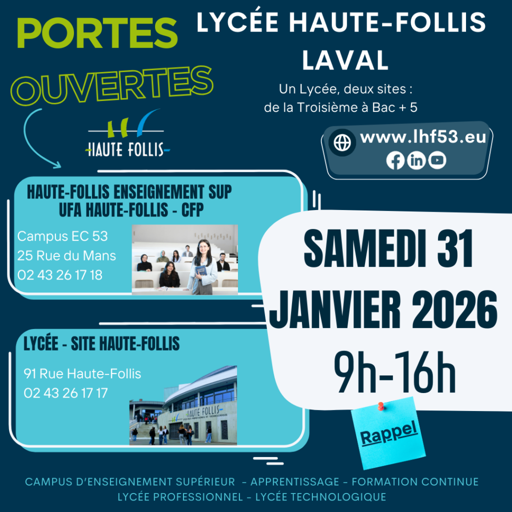 RAPPEL – PORTES OUVERTES LE SAMEDI 31 JANVIER 2026 – LYCEE ET CAMPUS