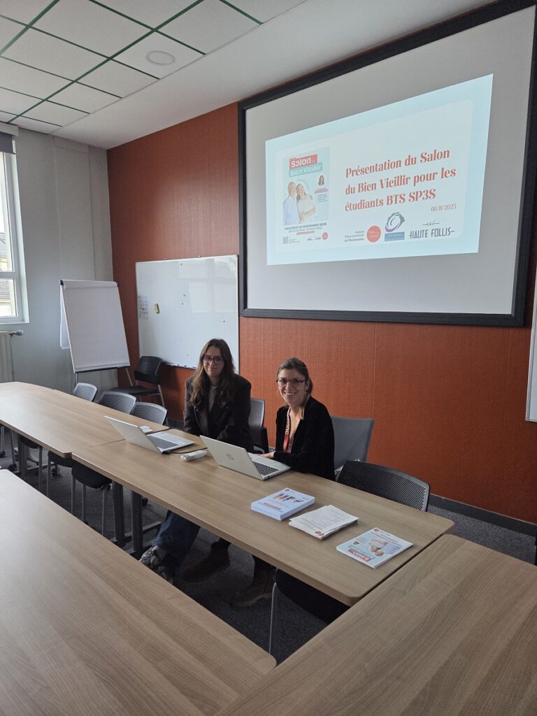 Dans le cadre de leur BTS Services et Prestations des Secteurs Sanitaire et Social (SP3S), le 6 novembre 2025, nos étudiants ont été accueillies à la Maison Départementale de l’Autonomie (MDA) par Florine Duclos et son alternante Rosalie Denieul. Elles ont présenté, dans un premier temps, les missions, les publics de la MDA ; puis, dans un second temps, le « Salon du Bien Vieillir » ainsi que nos missions qui seront à effectuer le 26 novembre 2025.